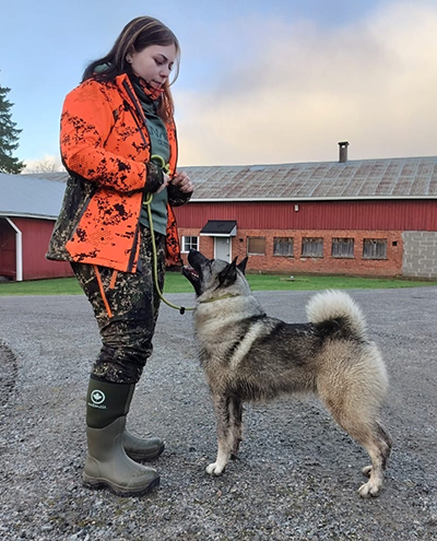 Ihastuin hirvikoiriin lapsuudessani tuttavaperheessä, jossa oli jämtlanninpystykorvia. En tule metsästävästä perheestä enkä kasvanut lajiin pienestä pitäen. Olin harrastanut ammuntaa ja tunsin aseet ennen kuin löysin metsälle koirien kanssa.”